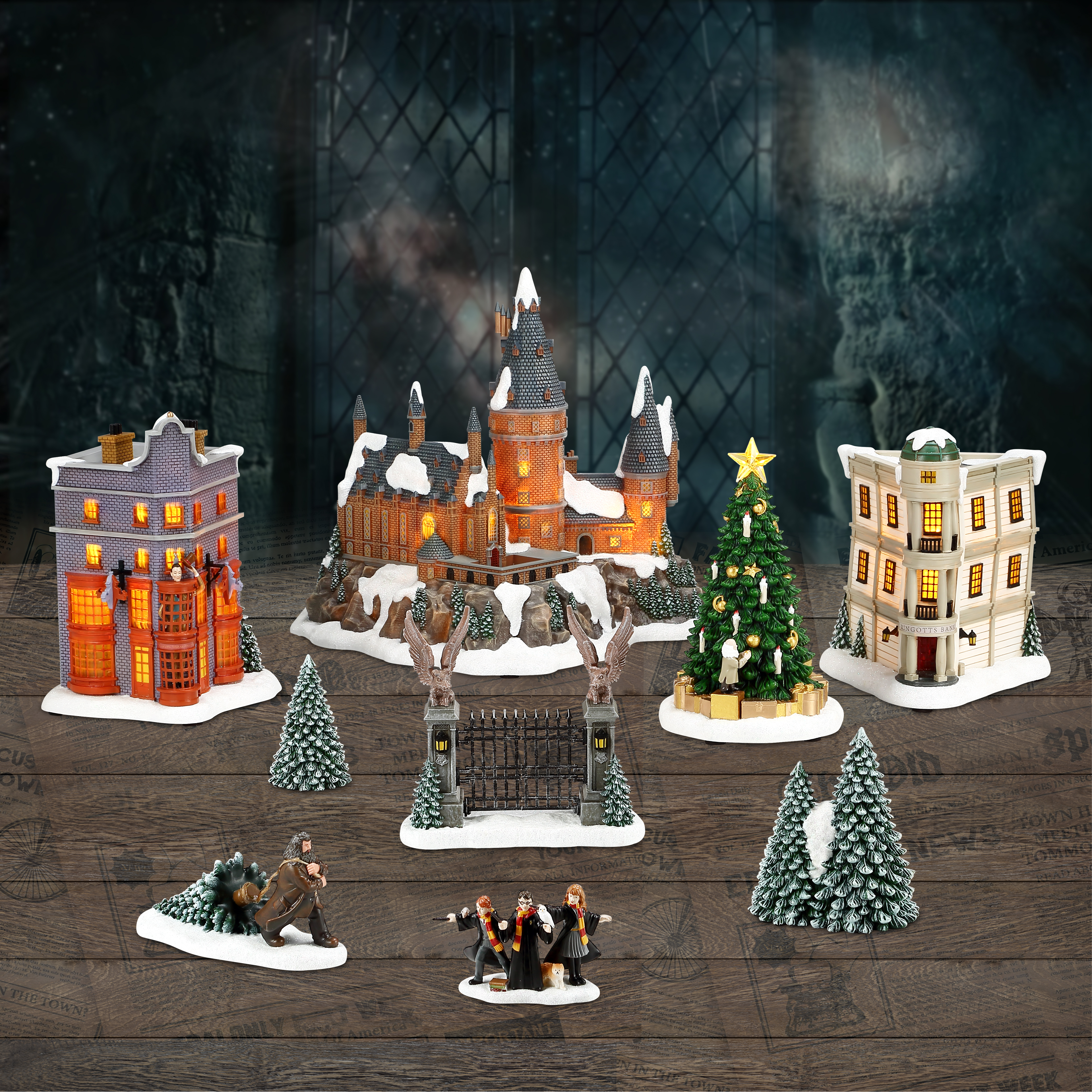 - Includes assorted Harry Potter Christmas village pieces
